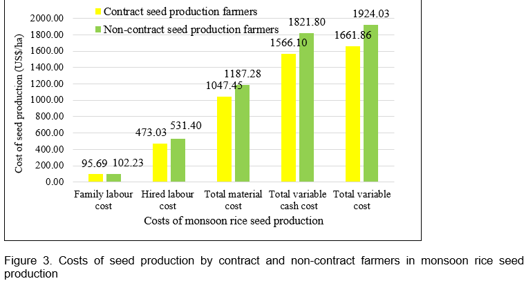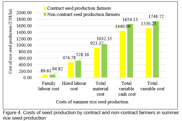 The findings underscore the profitability of seed production involving private sector participation, indicating a positive role for seed companies in supporting local farmers. This insight motivates further research into factors influencing farmer participation in contract farming systems for rice seed production.