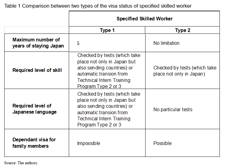 Foreign nationals can obtain the SSW Type 1 visa status through two ways: (i) automatic transition from TIT Type 2 or Type 3 at the completion of the TITP period;2 (ii) take a Japanese language proficiency and working skills test (the content and levels differ according to the 14 industrial fields). Examinations for SSW Type 2 are held only in Japan, and only workers nearing the end of their SSW Type 1 period qualify.3 This way, technical intern trainees can extend their stay in Japan for five years by applying the SSW Type 1. If they upgrade their visa status from SSW Type 1 to SSW Type 2, they can remain in Japan without a time limit.