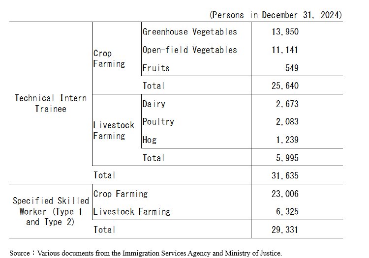 Table 3. Foreign agricultural laborers under the visa statuses of technical intern trainee and specified skilled worker
